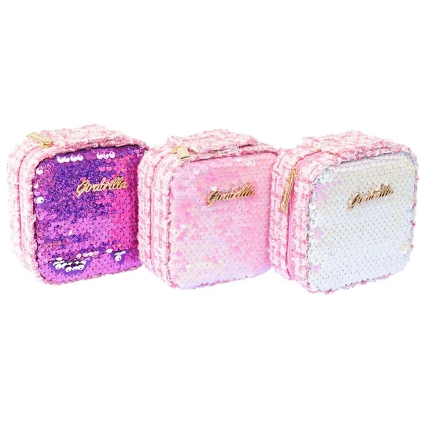 Petite trousse à garder dans son sac à main. Enrichie de paillettes Girabrilla, garnie de tissu tweed et refermable par une fermeture éclair. Votre maquillage quand vous en avez besoin et où vous en avez besoin : ombre à paupières, brillant à lèvres, applicateur et miroir sont tout ce dont vous avez besoin pour être à votre avantage.