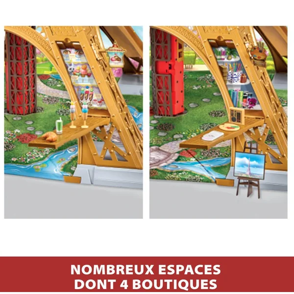 Transforme le monument le plus reconnaissable au monde en un coffret de jeu Miraculous—parfait pour tes héros et poupées fashion parisiens préférés. Mesurant une hauteur impressionnante de 1,20 m, le Coffret de Jeu Paris Heroez Miraculous est rempli de surprises magiques avec trois niveaux de jeu, un ascenseur fonctionnel et une tyrolienne ! Explore le coin pique-nique magique du monument, le restaurant, le balcon, les boutiques et bien plus encore avec plus de 40 accessoires !.