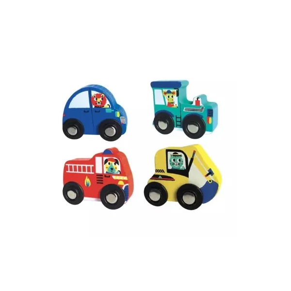 Après avoir assemblé les pièces du puzzle, votre enfant prendra plaisir à faire rouler les 4 petits véhicules en bois sur ce superbe circuit. Il s’amusera à inventer de belles histoires avec la voiture, le camion de pompier, le tracteur et la tractopelle.