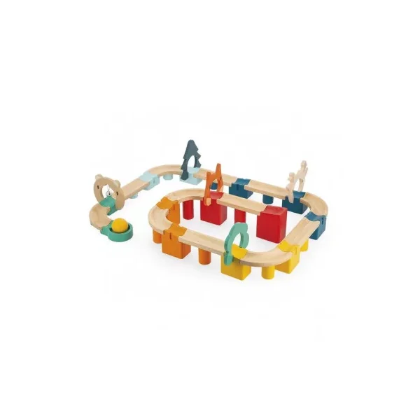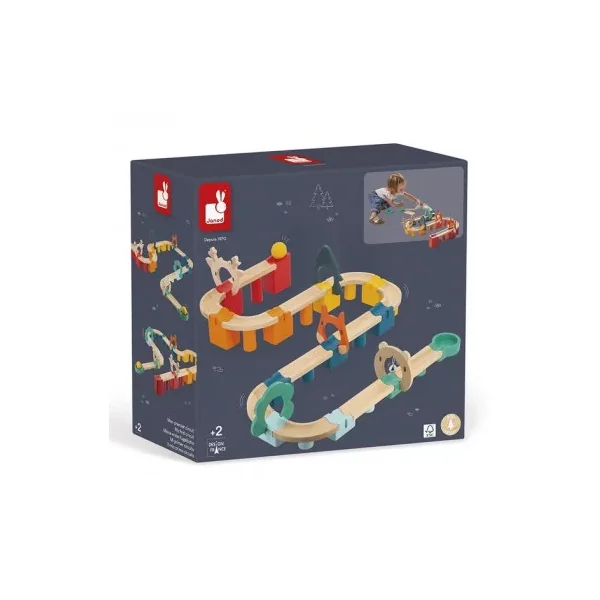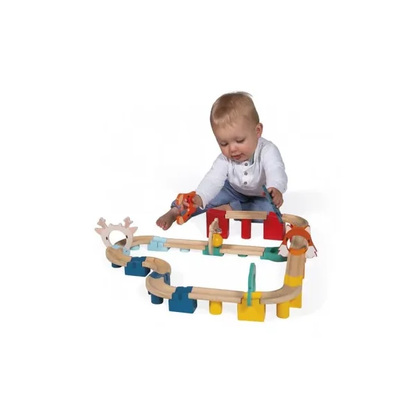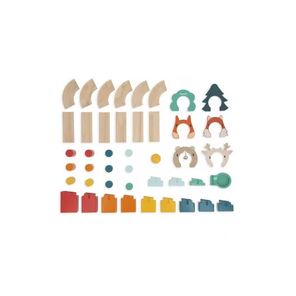 Découvrez le jouet mon premier circuit de Janod, un jouet d’éveil en bois pour les enfants dès 2 ans, un jeu de parcours composé de 44 pièces en bois.