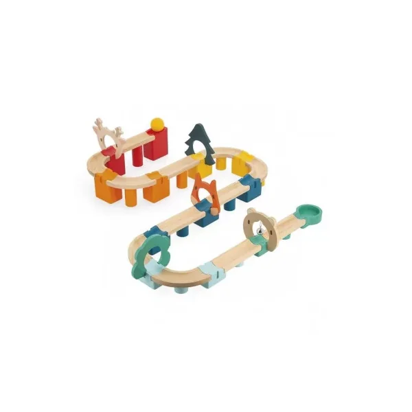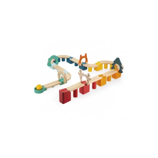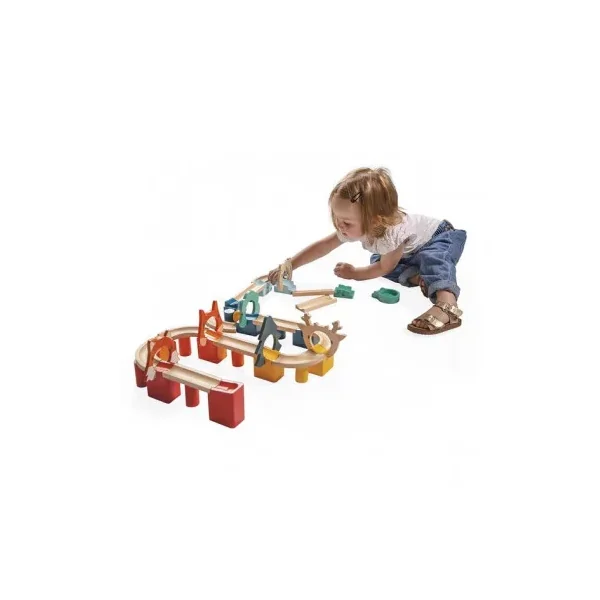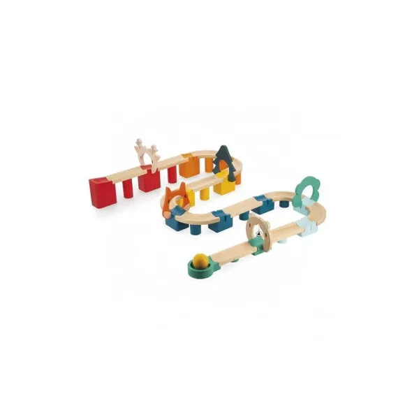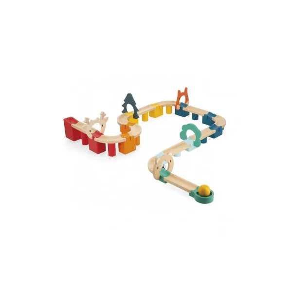 Votre enfant va s’amuser à construire de nombreux circuits et à faire dévaler la balle jusqu’à la clochette à l’arrivée.