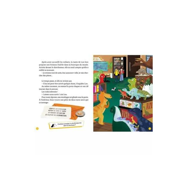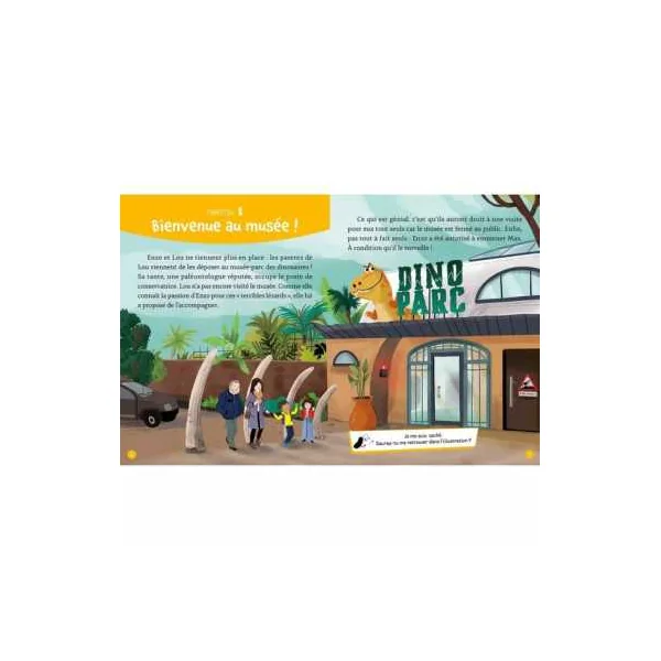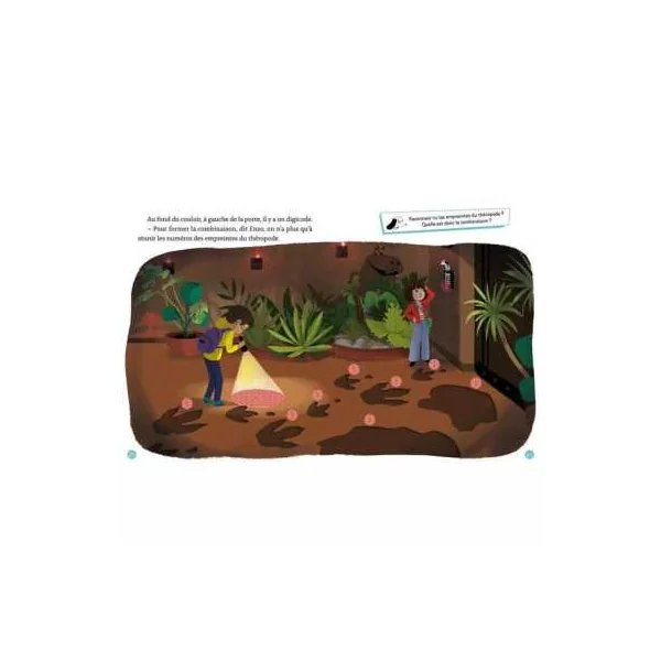 Super, Enzo et Lou vont au musée des dinosaures ! Mais alors qu’ils attendent leur guide, ils reçoivent un curieux message… Enzo doit faire appel à ses talents de détective pour sortir du musée. Et cette fois, le lecteur devra l’aider !