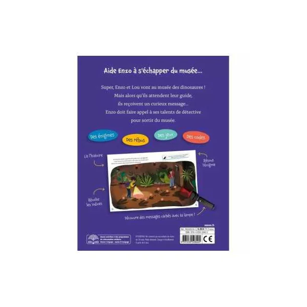 Découvrez le livre Mon roman énigme – le musée des dinosaures de Auzou, un livre escape game avec une lampe de détective à offrir aux enfants dès 6 ans. Aide Enzo à s’échapper du musée !