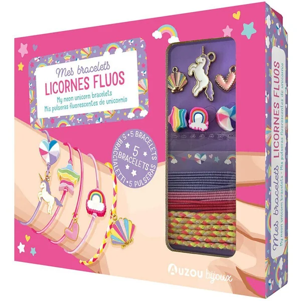 Un coffret pétillant et tendance pour créer 5 bracelets licornes aux couleurs fluo !