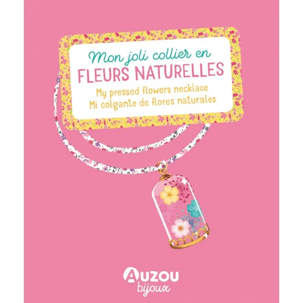 Une nouvelle édition du superbe bijou Mon joli collier en fleurs naturelles ! De quoi confectionner un très joli collier avec de vraies fleurs séchées, à placer dans une jolies fiole cloche.