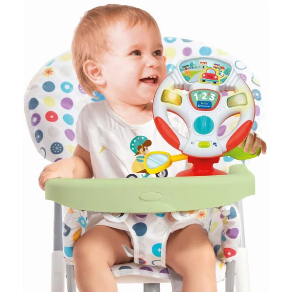 Un volant électronique interactif avec des effets sonores et lumineux.