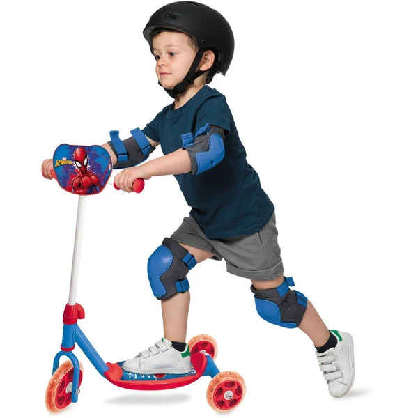 Découvrez la trottinette 3 roues Spider-Man. Avec son large plateau antidérapant et ses deux roues arrière pour plus de stabilité, elle est idéale pour l’initiation des plus petits en toute sécurité. Spécificités : Plateau en plastique, Structure en acier, Tubes en métal, Roues en plastique, diamètre : 14 cm (avant) / 12 cm (arrière), Plateau antidérapant, Sacoche amovible (à attacher au guidon) fournie, idéale pour y ranger et transporter ses affaires. Poids maximum utilisateur : 20 kg.
