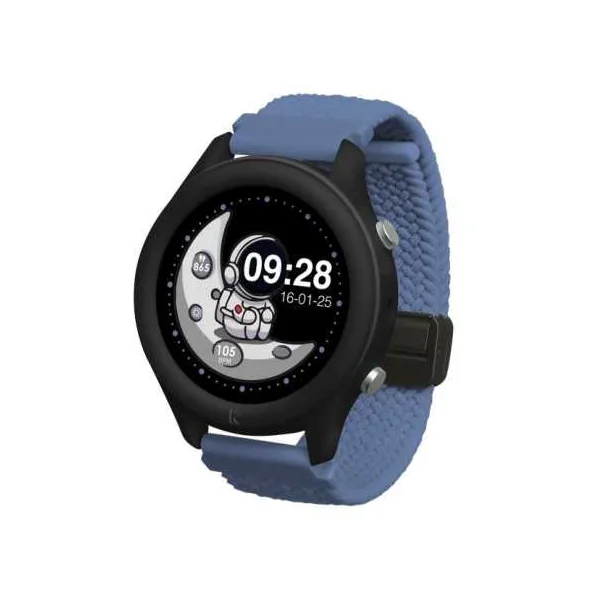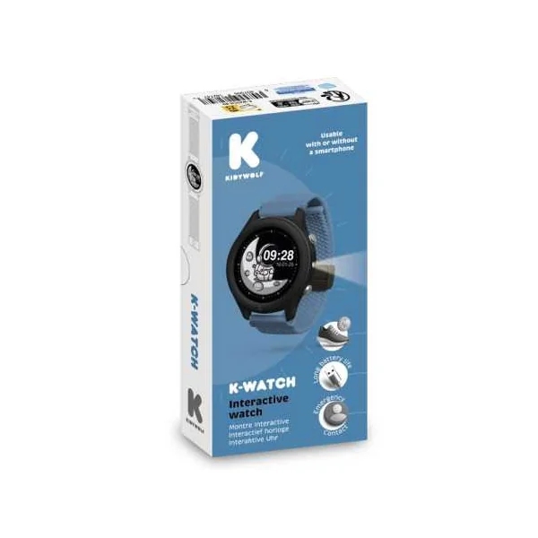 Découvrez la montre connectée K-Watch bleue de Kidywolf, une montre interactive conçue pour accompagner les enfants et les adolescents dans toutes leurs aventures du quotidien.