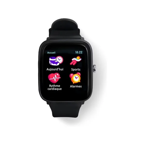 Nombreuses fonctions intégrées telles qu’un tracker d’activité, un tracker de sommeil et de rythme cardiaque plus 4 jeux intégrés pour plus de fun. Se synchronise avec l’application (téléchargeable sur tout smartphone) pour créer un nouveau profil, vérifier les statistiques et l’historique, ou encore pousser de nouveaux cadrans sur la montre. Elle est équipée d’un grand écran tactile couleur, d’un chargeur magnétique et d’une batterie longue durée qui est parfaitement étanche.