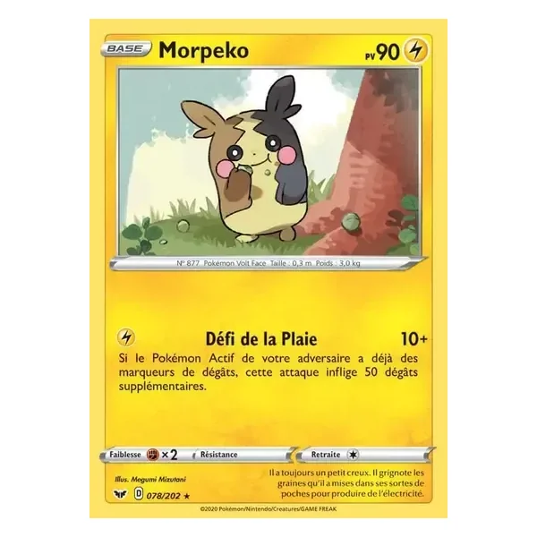 Découvrez Morpeko (ssh078), une carte Pokémon de l’extension Épée et Bouclier, provenant du bloc Épée & Bouclier. Idéale pour compléter votre collection, cette carte Rare plaira autant aux collectionneurs qu’aux joueurs.