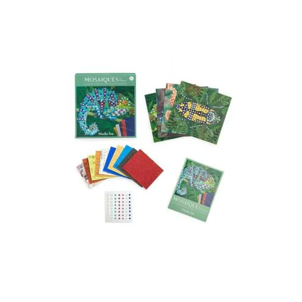 Découvrez le coffret Mosaïquesde la collection Tout autour du monde de Moulin Roty, une activité créative pour les enfants dès 5 ans.