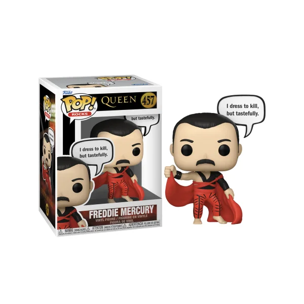 Faites entrer la chanteuse de Queen dans la salle ! Créez une expérience musicale inoubliable en accueillant POP ! Freddie Mercury sur la scène de votre collection. Cette figurine de collection POP ! Sayings comporte une bulle qui dit : « Je m’habille pour tuer, mais avec goût. » Avec qui cet artiste légendaire collaborera-t-il ensuite dans votre collection POP ! Rocks ? La figurine en vinyle mesure environ 11,4 cm de haut.