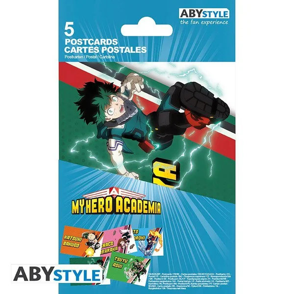 Midoriya, Bakugo, Todoroki, Uraraka et Asui vous font une démonstration de leurs pouvoirs sur ces magnifiques cartes postales My Hero Academia par ABYstyle !