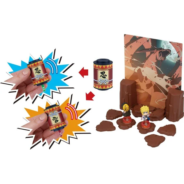 Entre dans l’aventure de Naruto ! Recrée la bataille épique entre Minato et le masked man. 2 figurines ninja incluses pour un diorama ultra fidèle à l’animé. Ce n’est pas seulement un diorama mais aussi un jeu : secouez le parchemin pour avancer et ombattez votre adversaire