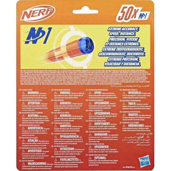 La marque Nerf permet aux joueurs de passer au niveau supérieur avec la haute performance des blasters Nerf N Series et des fléchettes Nerf N1 ! Quand on a les compétences d’un joueur de Nerf d’élite, il faut les blasters et les fléchettes appropriées pour prendre l’avantage dans les jeux à l’intérieur et à l’extérieur. Pionnière de la fléchette en mousse, la marque Nerf dévoile la prochaine évolution dans le tir de fléchettes en mousse avec les fléchettes Nerf N Series N1 offrant une DISTANCE, une PRÉCISION et une VITESSE EXTRÊMES. Avec les fléchettes en mousse Nerf N1 officielles, on peut se lancer dans des compétitions Nerf palpitantes en famille ou entre amis. On peut tirer des fléchettes qui volent de plus en plus loin avec une précision extrême, ce qui donne l’avantage dans les compétitions Ce pack contient 50 fléchettes Nerf N Series N1, compatibles uniquement avec les blasters Nerf N Series. Lunettes recommandées (non incluses). Blasters vendus séparément, dans la limite les stocks. NERF, HASBRO et toutes les marques et logos associés sont des marques de commerce de Hasbro, Inc.