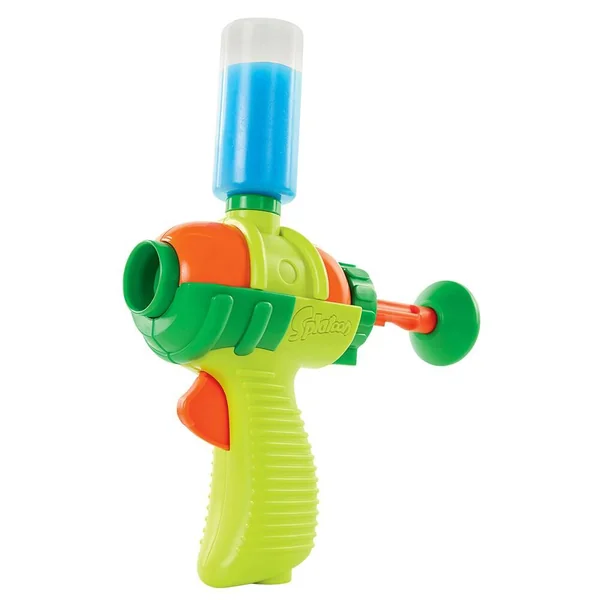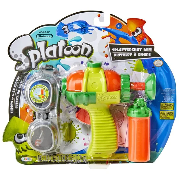 Petit pistolet à encre ou mini splattershot. Inspiré tout droit du jeu Splatoon ! Ce set cntient 1 pistolet, 1 cartouche d’encre et 1 paire de lunettes. Facile à utiliser : tire le piston en arrière, presse le flacon pour transférer l’encre à l’intérieur du pistolet, et presse la détente pour projeter l’encre. Portée de tir : environ 10 mètres. La cartouche contient des munitions pour plus de 50 tirs, soit 65 g d’encre. Instructions incluses : de sécurité et de nettoyage. A utiliser sous la surveillance d’un adulte. Pour une utilisation à l’extérieur uniquement. L’encre reste là où elle atterrit, elle dégouline légèrement. Pistolet en plastique : 25 x 4 x 19 cm.
