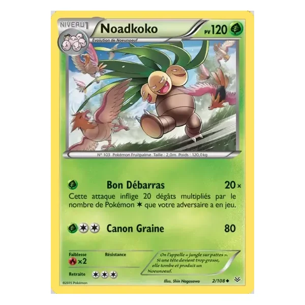 Découvrez Noadkoko (ros002), une carte Pokémon de l’extension Ciel Rugissant, provenant du bloc XY. Idéale pour compléter votre collection, cette carte Peu Commune plaira autant aux collectionneurs qu’aux joueurs.