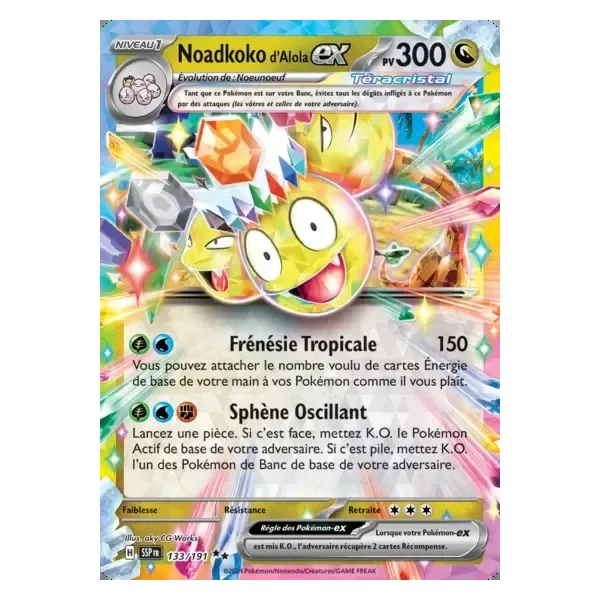 Découvrez Noadkoko d’Alola (ssp133), une carte Pokémon de l’extension Étincelles Déferlantes, provenant du bloc Écarlate & Violet. Idéale pour compléter votre collection, cette carte Double Rare plaira autant aux collectionneurs qu’aux joueurs.