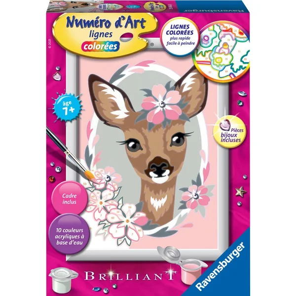 C’est facile, beau et amusant de peindre par numéro grâce aux lignes colorées pré-peintes ! Parmi les 20 visuels petits formats à peindre et à accrocher, ce portrait rose et fleuri d’un joli faon saura ravir les enfants et compléter leurs collections. La peinture par numéro est même brillante grâce à l’ajout de pièces de bijoux incluses.