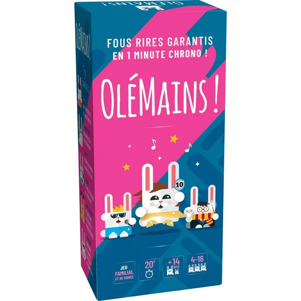 Avec Olémains les joueurs se prennent au jeu pour une ambiance délirante. Il faut dire que les consignes et surtout les gages sont hilarants. En recherche d’autres jeux conviviaux ? Découvre aussi Bananagrams pour passer des soirées mémorables ! Retrouve toutes les idées d’activités à faire avec les amis et les proches en boutique et sur JouéClub.fr.