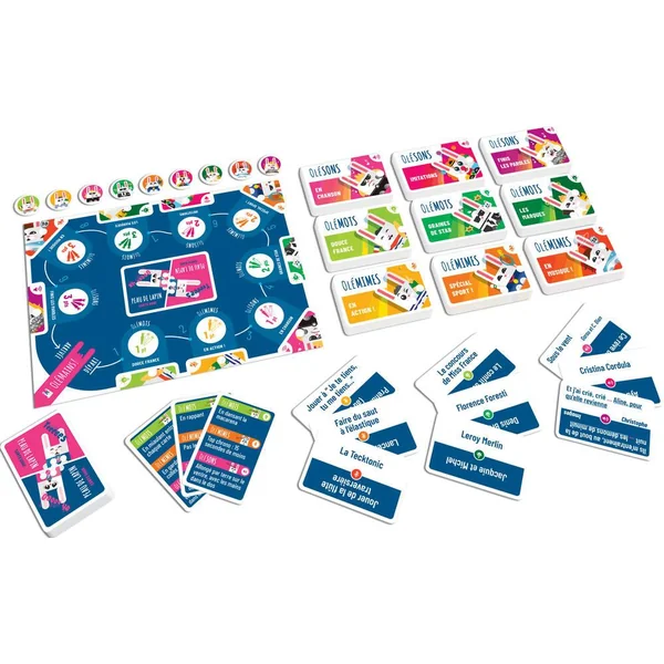 Dans Olémains, deux équipes se défient à tour de rôle sur neuf thèmes. L’objectif est de faire deviner le plus de mots en une minute. Similaire au jeu du post it, Olémains met du piment avec la présence de gages. Attention, tu vas devoir faire preuve d’ingéniosité pour faire deviner le mot puisqu’il te faudra décrire, mimer ou chanter selon la carte piochée. Déploie tous tes talents de comédien ou de chanteur pour faire gagner ton équipe !