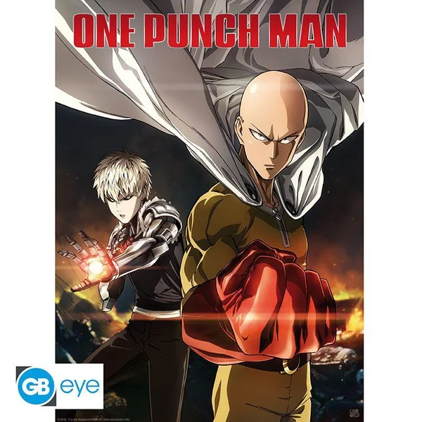 Saitama et Genos font équipe face aux menaces sur ce poster One Punch Man par GB eye.