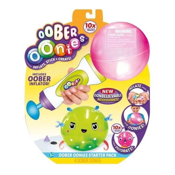 Pompe et les picots se transforment en Oober. Ajoute les accessoires déco pour créer de jolis personnages ! Recommence autant de fois que tu veux ! Inclus 1 gonfleur Oober, 4 picots Oober et des accessoires déco.