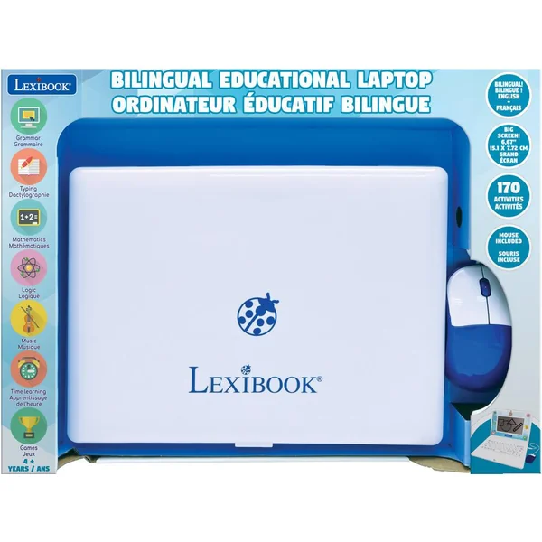 Ordinateur portable éducatif avec 170 activités (85 dans chaque langue) pour une expérience d’apprentissage amusante et interactive !