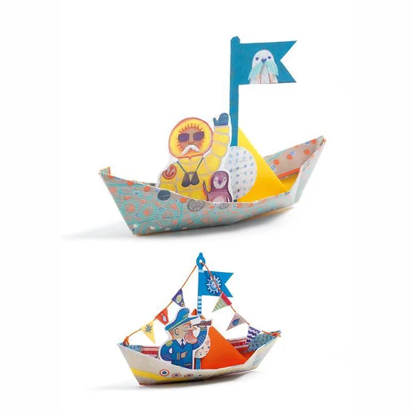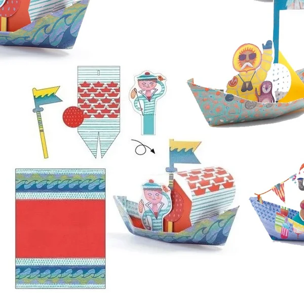 Découvrez les origamis Bateaux sur l’eau de Djeco, de jolis bateaux à réaliser par pliage avec une coque extérieur qui résiste à l’eau.