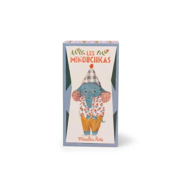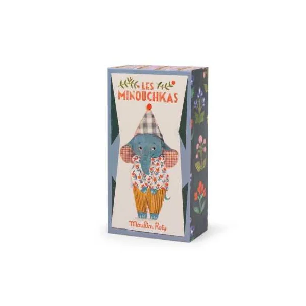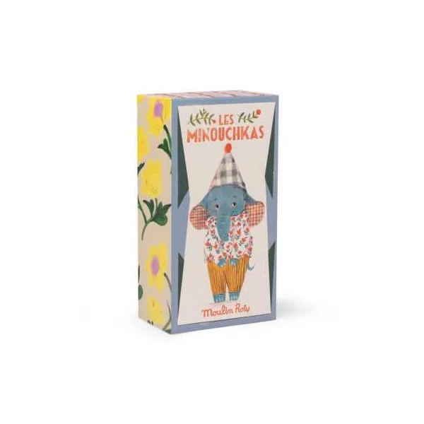 Découvrez Pablo l’éléphant de la collection Les Minouchkas de Moulin Roty, une adorable poupée articulée de 25 cm imaginée par l’artiste Lucille Michieli, à offrir aux enfants dès l’âge de 10 mois.