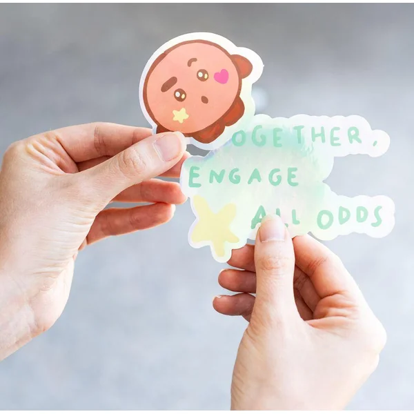 Lot de 2 autocollants en vinyle découpés à l’emporte-pièce pour décorer différentes surfaces. Ils sont présentés dans un sachet en plastique transparent.