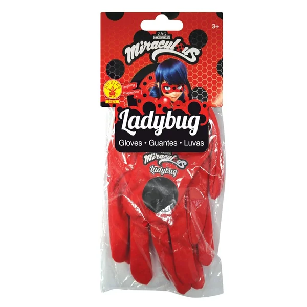 Une paire de gants en tissu jersey rouge à pois noirs avec logos Miraculous Ladybug et poignets élastiques. Matière : Textile FAQ