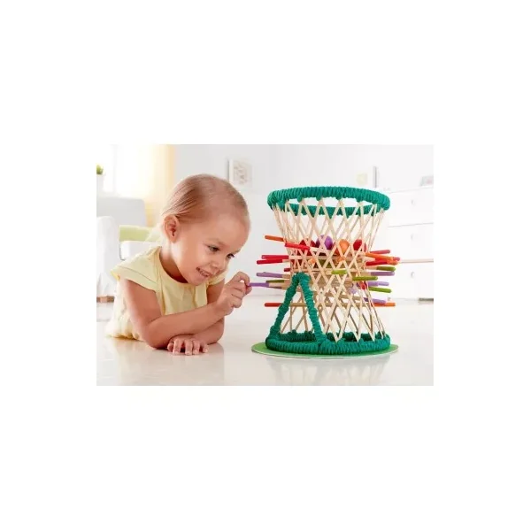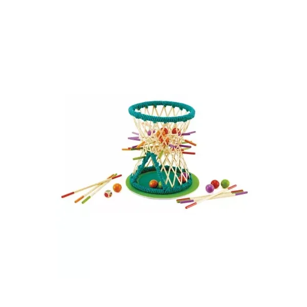 Découvrez le jeu Pallina de Hape, un jeu d’adresse pour les enfants à partir de 3 ans où il faudra retirer des baguettes sans faire tomber de billes.