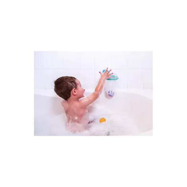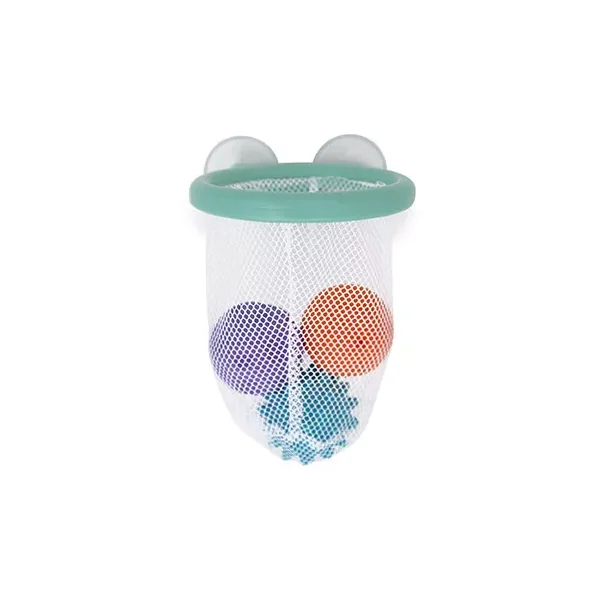 Equipé de ventouses, le panier s’accroche sur les parois de la baignoire ou sur la faïence, votre enfant pourra alors y lancer les 3 balles tactiles et gicleurs aux textures différentes pour allier le toucher au jeu et développer la sensibilité de votre enfant.
