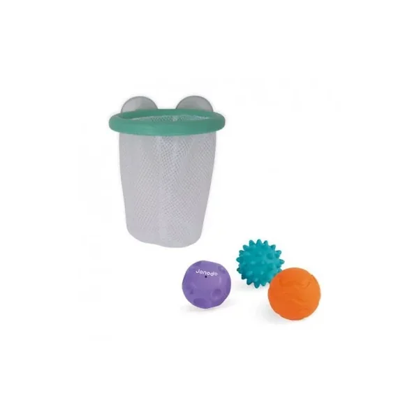 Découvrez le panier de basket de bain de Janod, un incontournable jouet de bain avec un panier de basket et ses trois balles pour s’amuser à partir de 1 an.