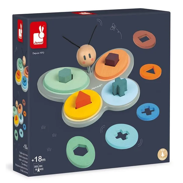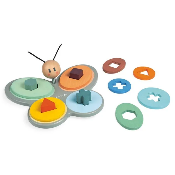 Un papillon composé de 8 formes à venir placer sur ses ailes pour apprendre en s’amusant ! Ce jouet d’éveil est un jeu d’encastrement idéal pour se familiariser avec les formes et les couleurs. Il permet de développer la coordination de bébé qui doit associer les bonnes formes aux bons emplacements. Une gamme aux couleurs délicates et aux lignes arrondies, inspirée des tendances actuelles pour accompagner les premiers apprentissages de votre enfant tout en douceur ! Peinture à l’eau. Bois : contreplaqué et théiere.