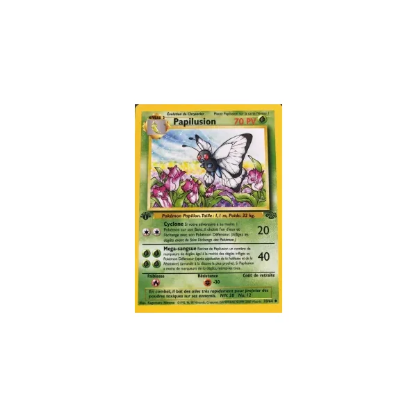 Découvrez Papilusion (ju033), une carte Pokémon de l’extension Jungle, provenant du bloc Wizards. Idéale pour compléter votre collection, cette carte Peu Commune plaira autant aux collectionneurs qu’aux joueurs.