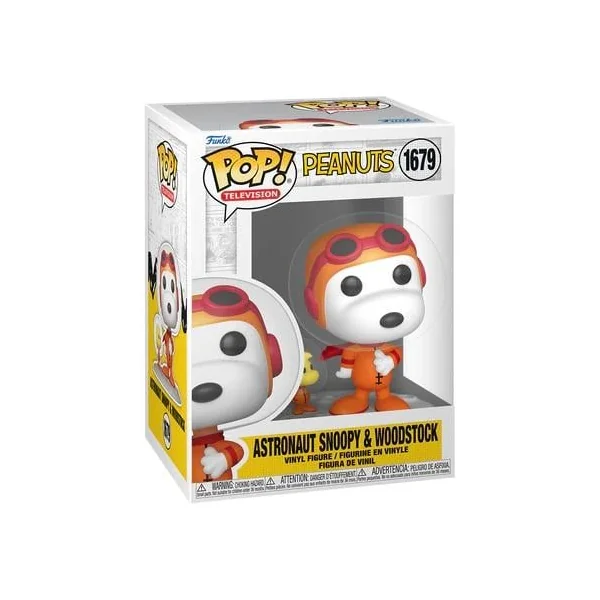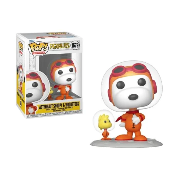 Cette figurine Funko Pop en vinyle n° 1679 représentant Snoopy et Woodstock, l’astronaute des Peanuts, mesure environ 9,5 cm de haut. Elle est présentée dans une boîte à fenêtre. À partir de 3 ans.
