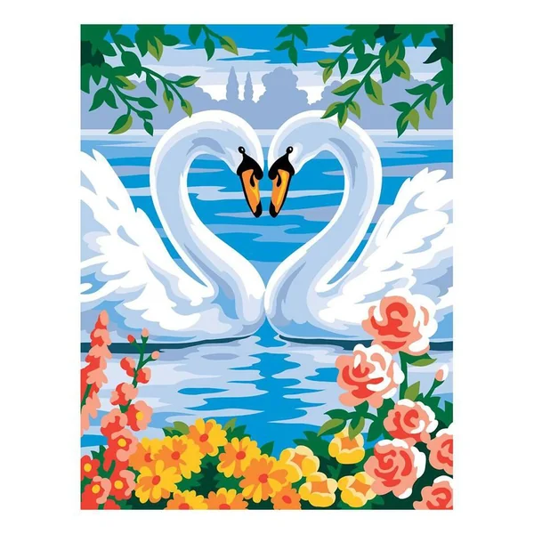 PEINTURE PAR N° DÉBUTANT – CYGNES AMOUREUX
