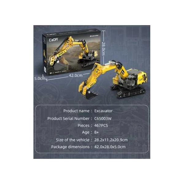 Découvrez la Pelleteuse 467 pièces de CaDA, un jeu de construction avec des briques pour réaliser son engin de chantier à partir de 8 ans.