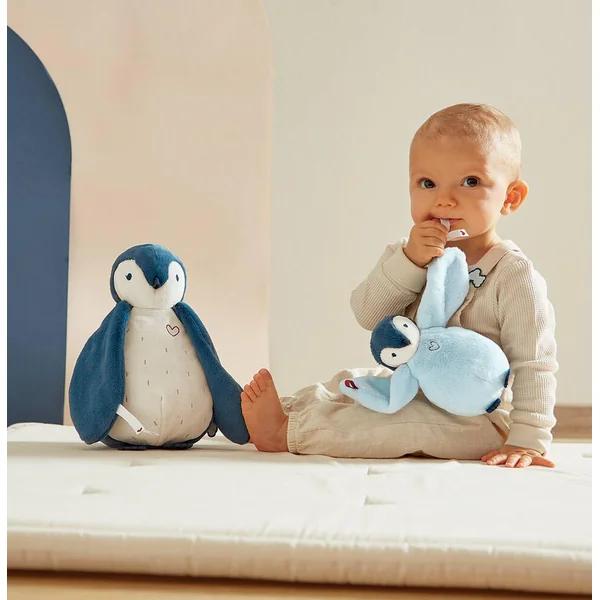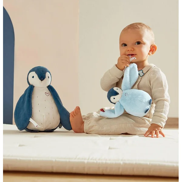 Cet adorable duo de manchots bleus tout doux, de 15 et 25 cm de hauteur, est toujours prêt à réconforter bébé lors des moments de séparation.