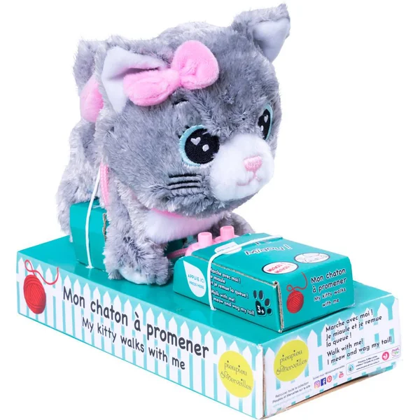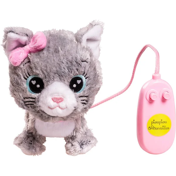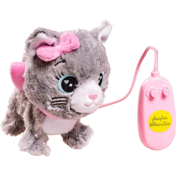 Adorable ! Ce petit chat en peluche Moustache marche en remuant la queue quand l’enfant appuie sur la télécommande. Une pression sur l’autre bouton et il miaule comme un petit chaton. Un jouet parfait pour marcher et se dépenser ! 3 piles LR03 fournies.