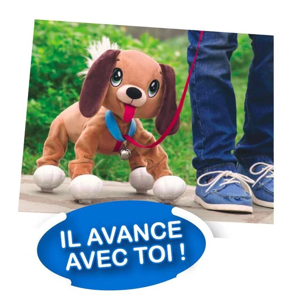 Le seul chien qui marche et court avec toi comme un vrai chien ! Promène-le, apprends-lui des tours et fais-lui des caresses. Il te suit partout et sautille derrière toi ! Fonctionne sans pile. Laisse incluse.