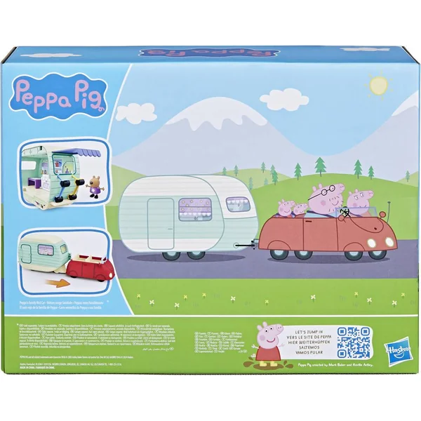 S’OUVRE POUR POURSUIVRE LE JEU : On peut sortir l’auvent pour un après-midi de jeu à l’ombre, imaginer Peppa aider à la cuisine, et abaisser les lits superposés quand vient l’heure du dodo3 FIGURINES PEPPA PIG : Ce jouet Peppa Pig inclut 3 figurines, dont Peppa, son petit frère George et leur bonne amie Birgit Bear6 ACCESSOIRES THÉMATIQUES : Ce coffret pour enfants inclut une table et 2 sièges, 2 trottinettes sur lesquelles les figurines peuvent monter et un gril –