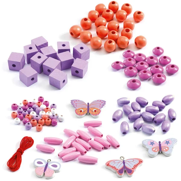 Les perles en bois « Papillons » est un coffret contenant plus de 450 perles pour créer de jolis bijoux. Un assortiment de couleurs et de formes bien pensé pour un résultat toujours harmonieux. L’enfant enfile sur les fils les perles pour réaliser de jolis colliers ou bracelets en toute liberté.