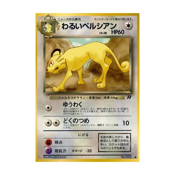 Découvrez Persian (rog048), une carte Pokémon de l’extension Rocket Gang, provenant du bloc Original Era. Idéale pour compléter votre collection, cette carte Commune plaira autant aux collectionneurs qu’aux joueurs.