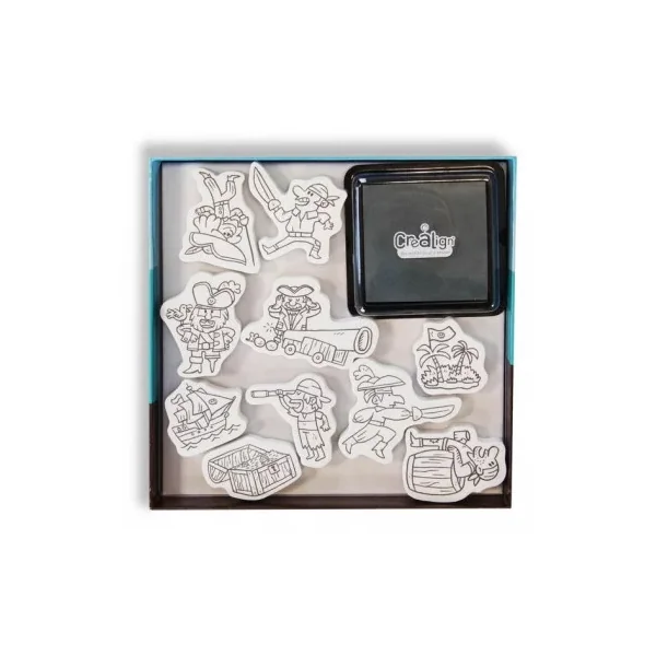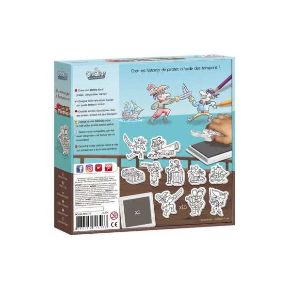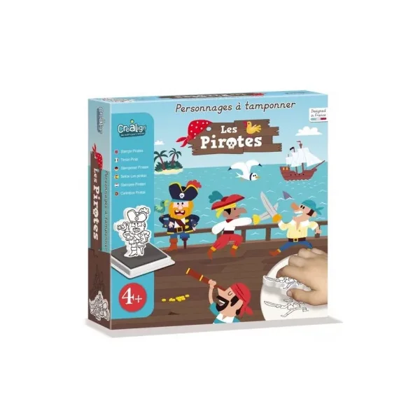 Découvrez le coffret Personnages à tamponner Les Pirates de Créalign’, un coffret créatif de 10 tampons en mousse sur le thème des pirates pour les enfants à partir de 4 ans.