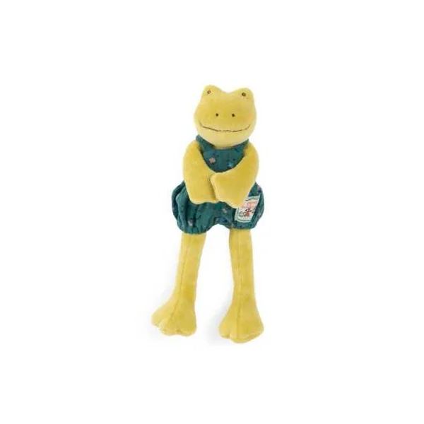 Découvrez le Petit doudou Perlette la grenouille de la collection Les Tout Petits La grande famille de Moulin Roty, un petit doudou de 20 cm que bébé pourra attraper par les bras ou les jambes.
