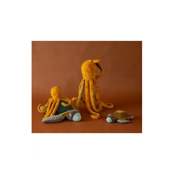 Découvrez le petit poulpe de la collection Tout autour du monde sous la mer de Moulin Roty, une peluche de 45 cm à offrir en cadeau de naissance. Une peluche toute douce pour câliner votre bébé et décorer sa chambre.