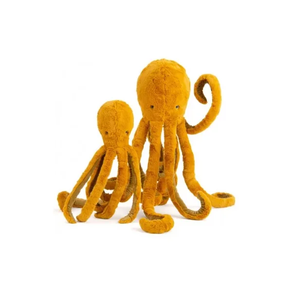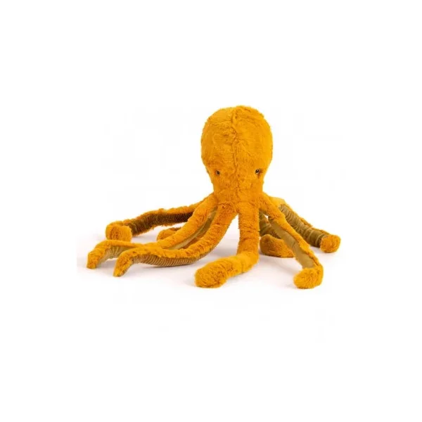 La couleur préférée de cet animal marin est le doré. Son corps tout en fourrure en est couvert, jusque sous ses tentacules pailletés en velours, qui rebondissent au rythme de ses mouvements. Un animal fascinant au regard attendrissant, qui deviendra le compagnon préféré de votre enfant.